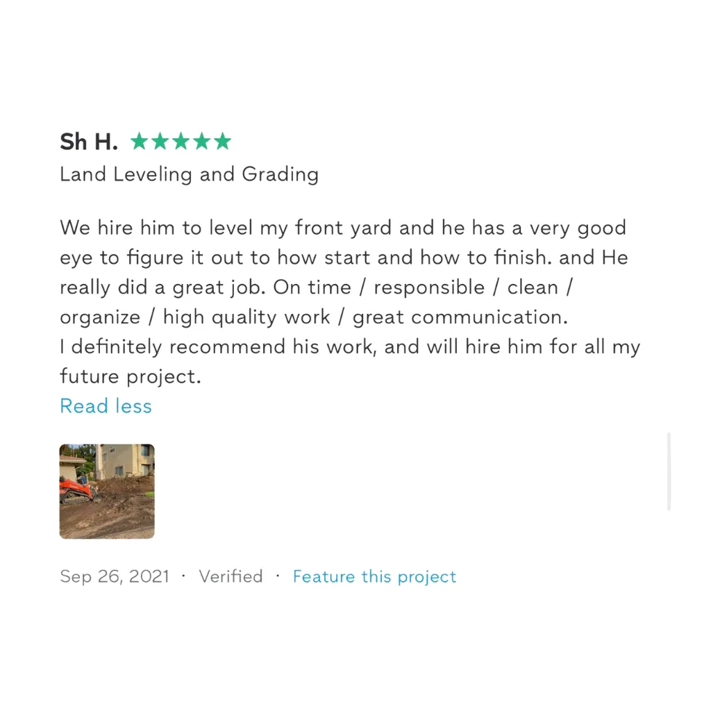 "We hire him to level my front yard and he has a very good eye to figure it out to how start and how to finish. and